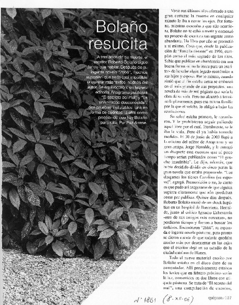 Bolaño resucita [artículo] Paz Arrese.