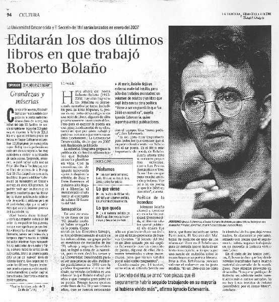 Editarán los dos últimoas libros que que trabajó Roberto Bolaño [artículo] R. C. <y> A. G. B.