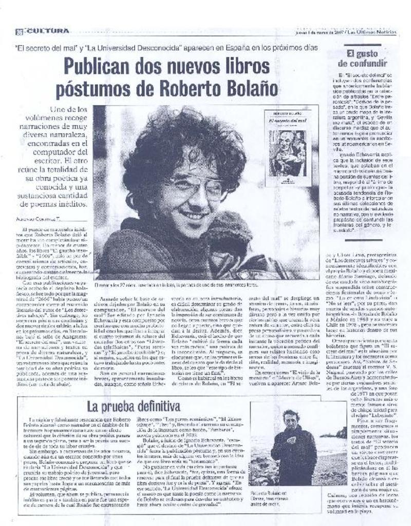 Autores chilenos - Bolaño, Roberto - Secreto del mal - Universidad desconocida