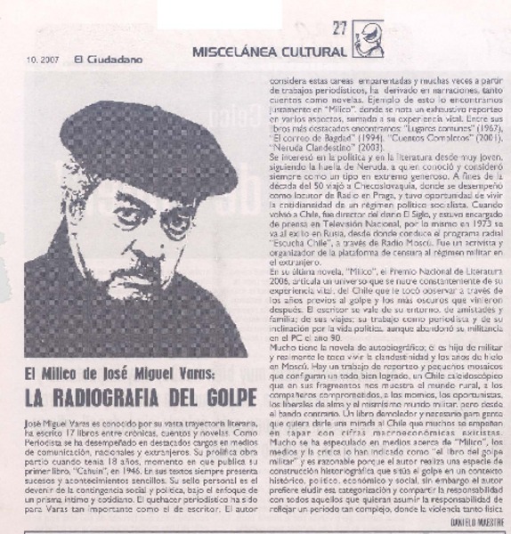 Autores chilenos - Varas, José Miguel - Varas Morel, José Miguel - Entrevistas - Milico