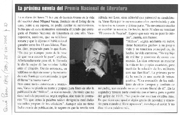 La Próxima novela del Premo Nacional de Literatura [artículo]