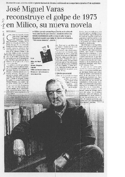 José Miguel Varas reconstruye el golpe de 1973 en Milico, su nueva novela [artículo] Roberto Careaga C.