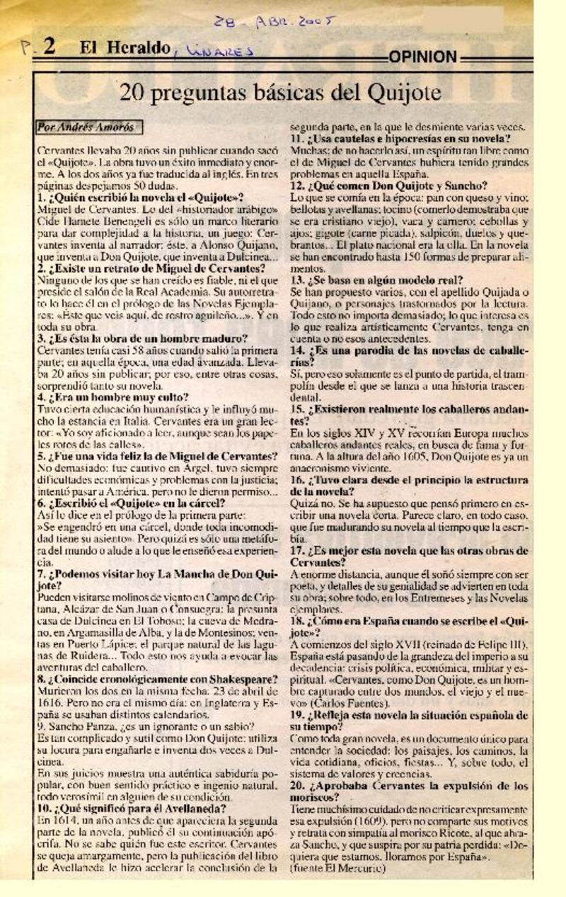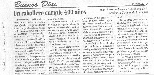 Un Caballero cumple 400 años. [artículo] Juan Antonio Massone.