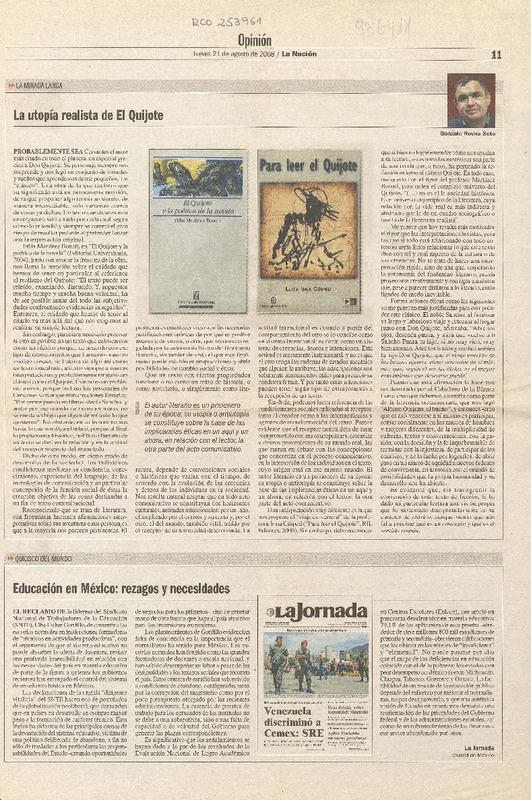 La utopía realista de El Quijote [artículo]Gonzalo Rovira Soto.