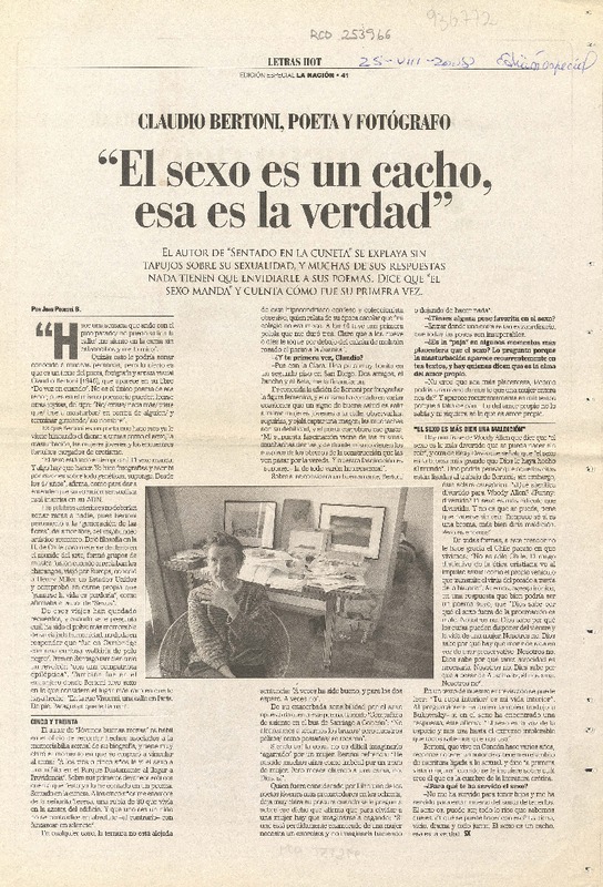 "El sexo es un cacho esa es la verdad" (entrevista) [artículo]Juan Podestá B.