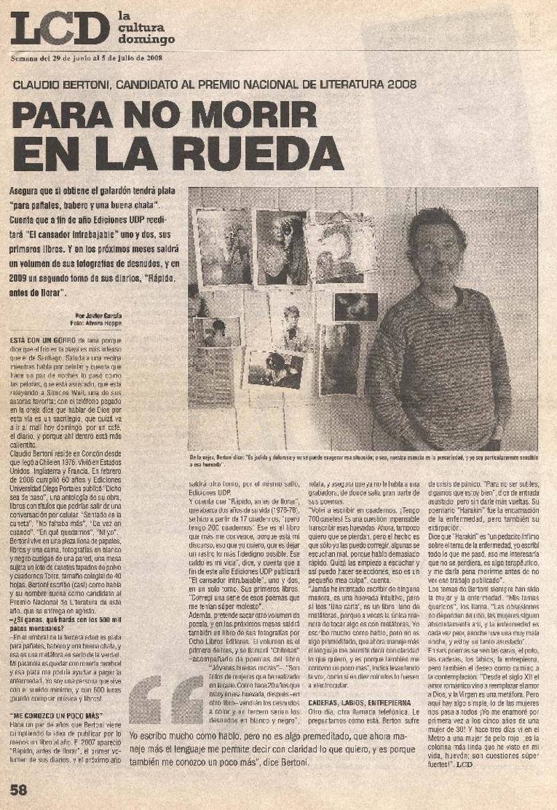 Para no morir en la rueda [entrevista] [artículo] : Javier García.