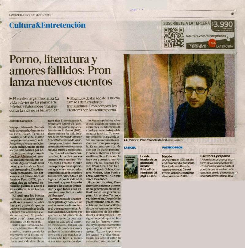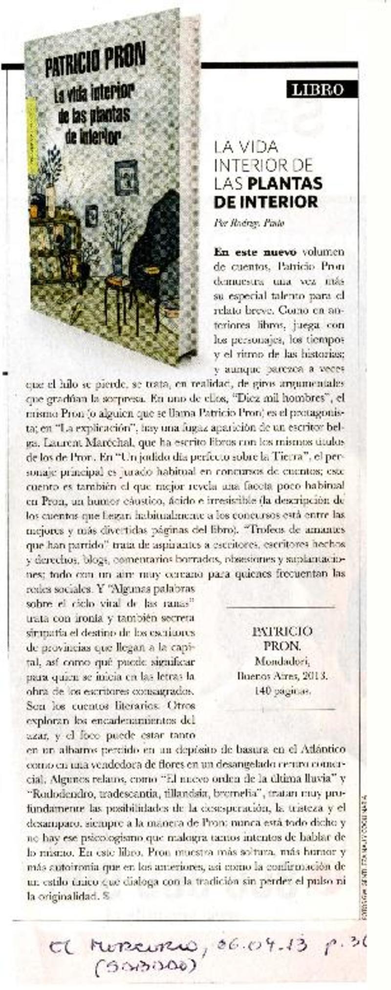 Entrevistas - Autores argentinos - Pron, Patricio - Vida interior de las plantas de interior