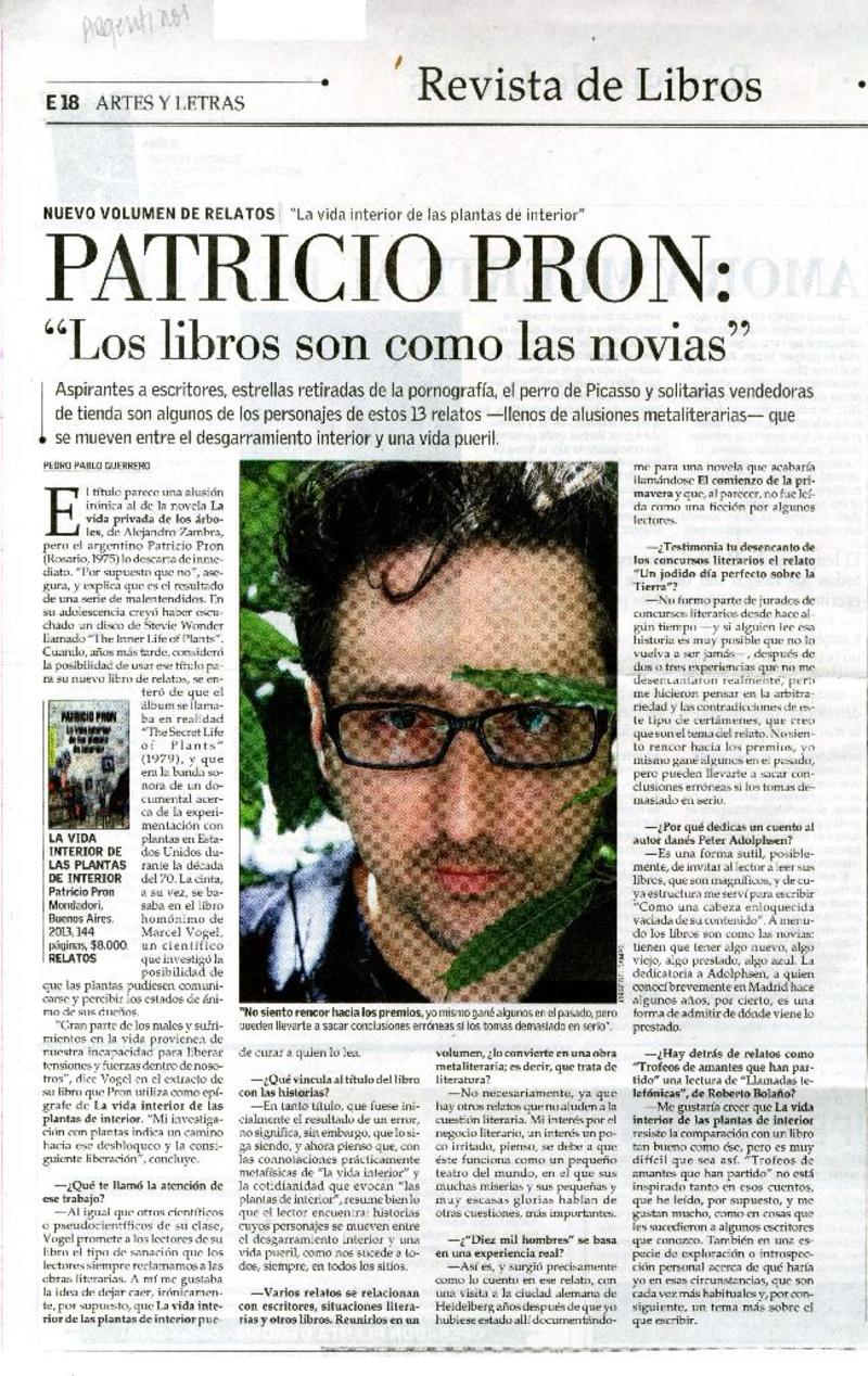 Patricio Pron: "Los libros son como las novias" (entrevistas) [artículo] Pedro Pablo Guerrero.
