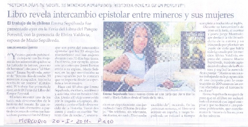 Libro revela intercambio epistolar entre mineros y sus mujeres [artículo] Carlos Andueza Garrido.