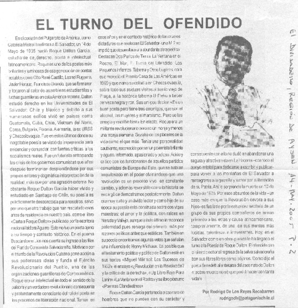 El Turno del ofendido. [artículo] Rodrigo de los Reyes Recabarren
