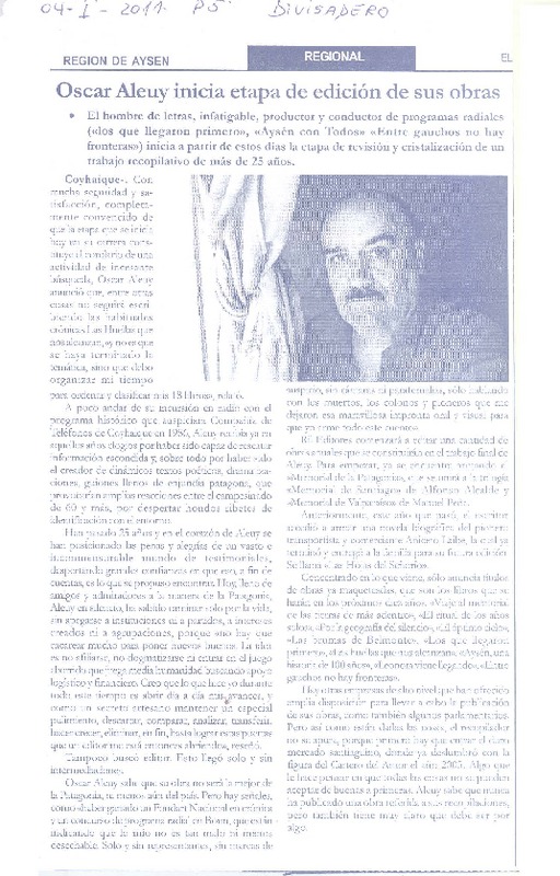 Óscar Aleuy inicia etapa de edición de sus obras [artículo].