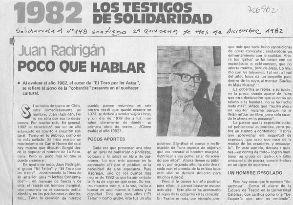 Juan Radrigán toma "el toro por las astas" : [entrevistas] [artículo]
