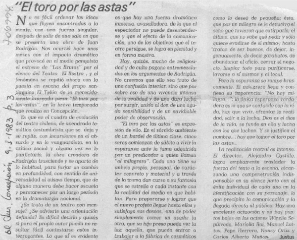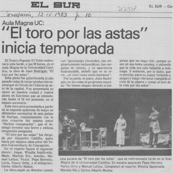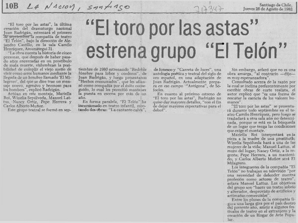 "El Toro por las astas" estrena grupo "El Telón". [artículo]