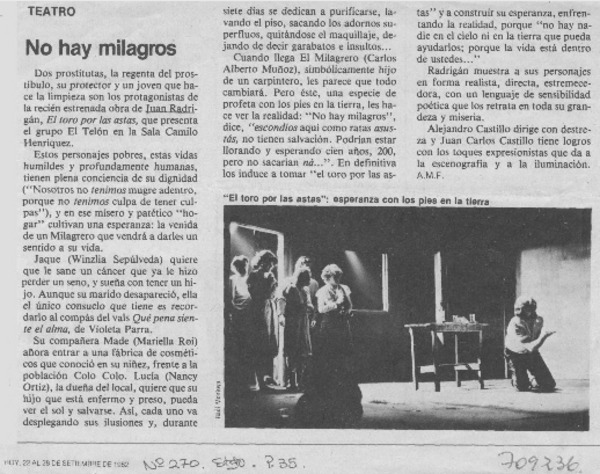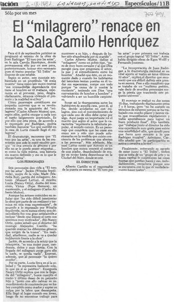El "Milagrero" renace en la Sala Camilo Henríquez. [artículo]