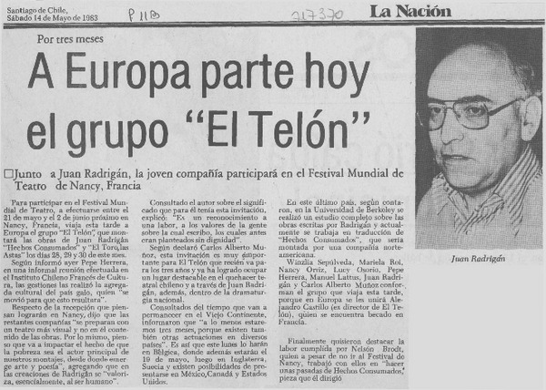 A Europa parte hoy el grupo "El Telón". [artículo]