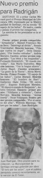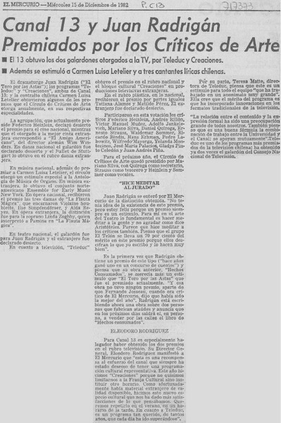 Canal 13 y Juan Radrigán premiados por los críticos de arte. [artículo]
