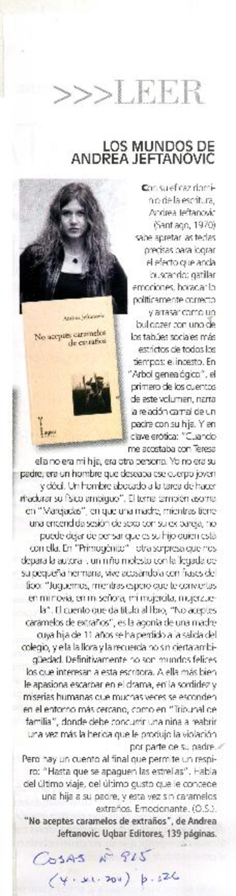 Los mundos de Andrea Jeftanovic [artículo] O.S.