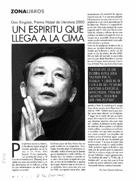 La Novela que le dio el Nobel a Gao Xingjian [artículo] A.G.B.