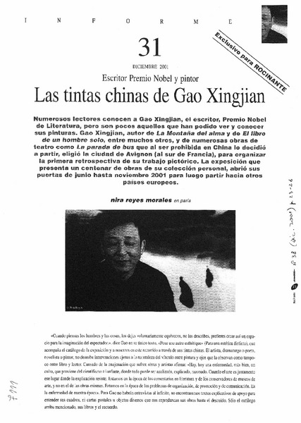 Las Tintas chinas de Gao Xingjian [artículo] Nira Reyes Morales.