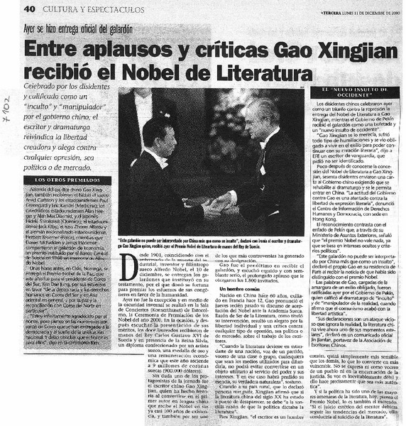 Nobel de literatura 2000 [artículo] Oscar Ganzalez Villarroel.