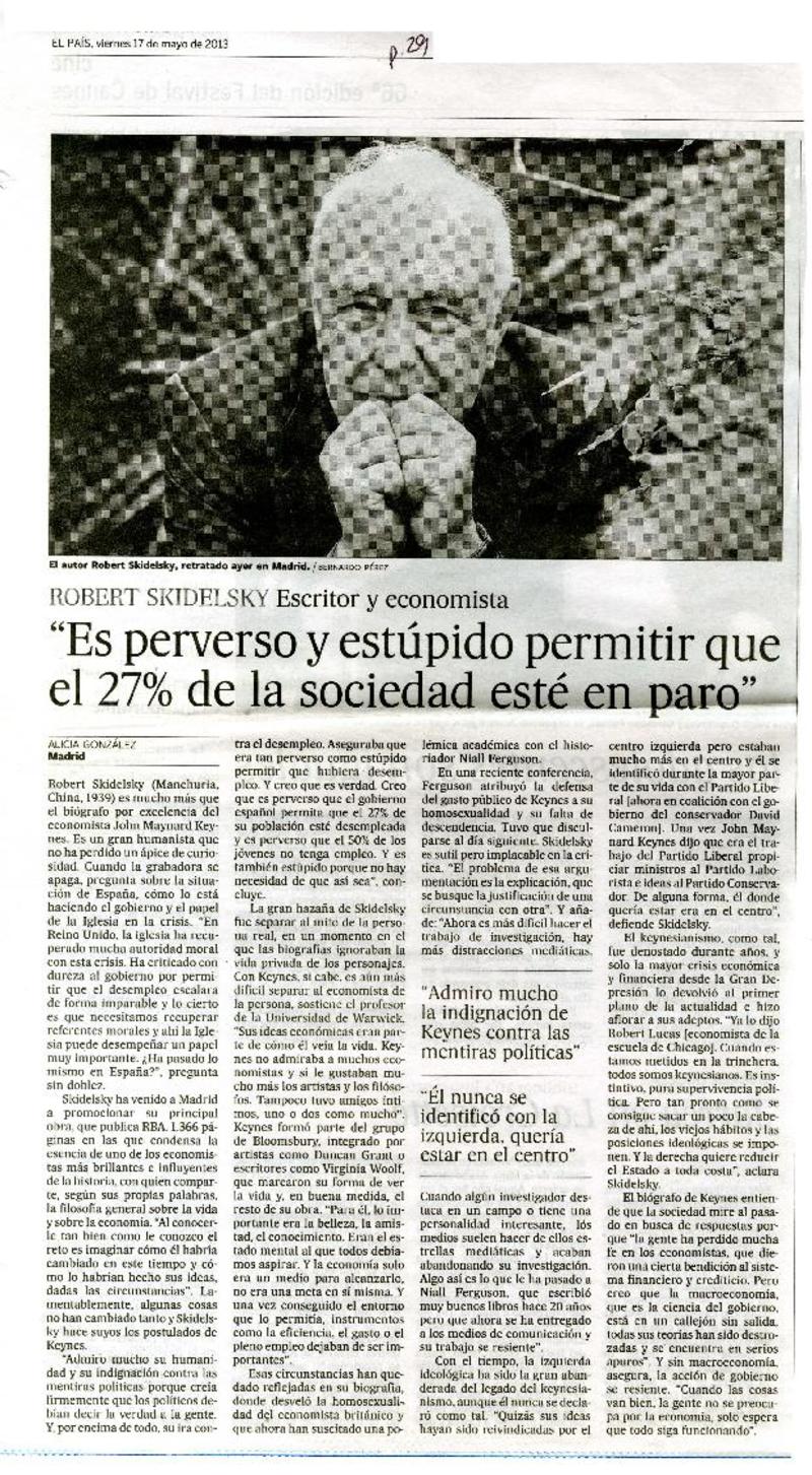 "Es perverso y estúpido permitir que el 27% de la sociedad esté en paro" [artículo] Alicia González.