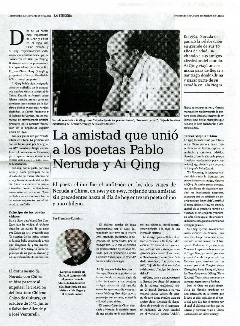 La amistad que unió a los poetas Pablo Neruda y Ai Qing [artículo] Francisco Dagnino.