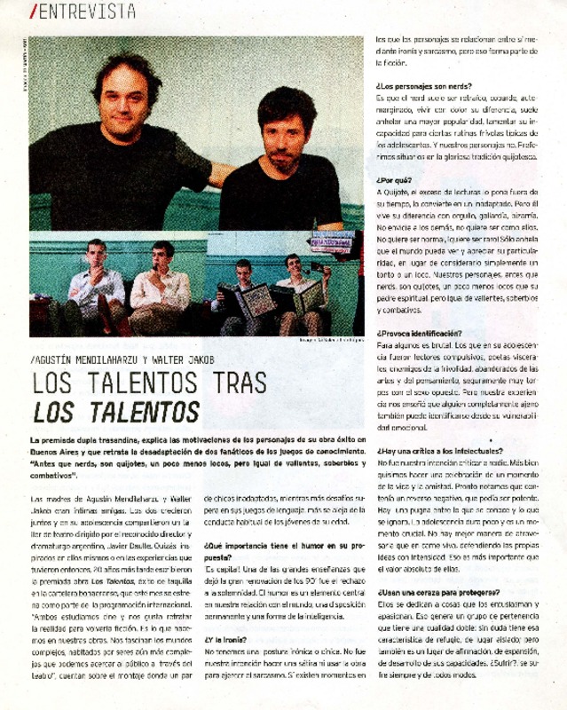 Mendilaharzu, Agustín - Entrevistas - Autores argentinos - Jakob, Walter - Talentos