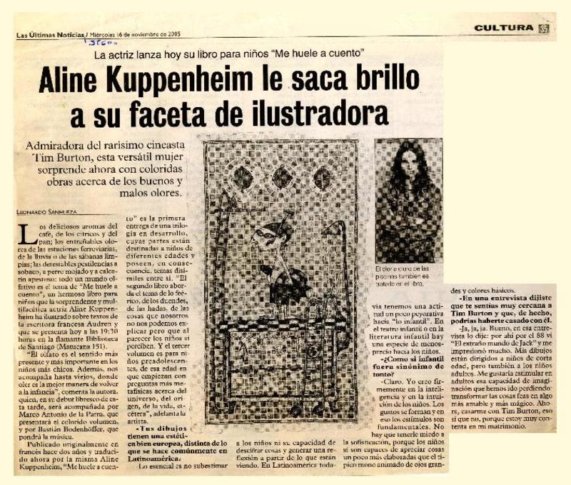 Aline Kuppenheim le saca brillo a su faceta de ilustradora (entrevista) [artículo]Leonardo Sanhueza.
