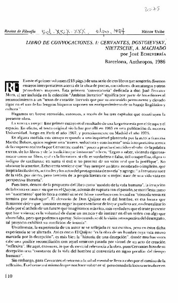 Libro de convocaciones. I, Cervantes, Dostoievsky, Nietzsche, A. Machado [artículo] Héctor Uribe Morales.