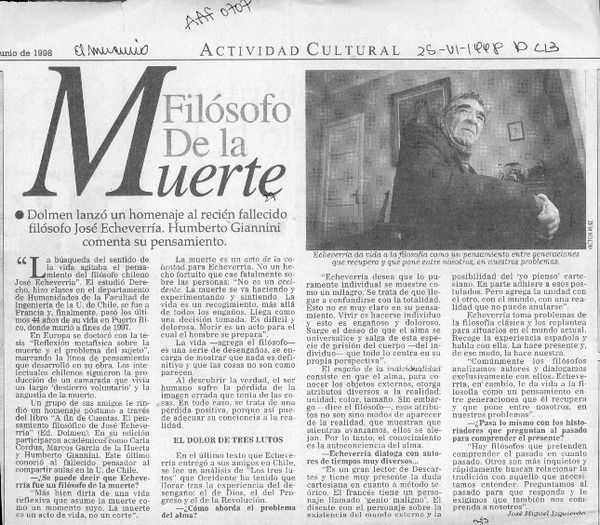 Filósofo de la muerte [artículo] Jos Migul Izquierdo.