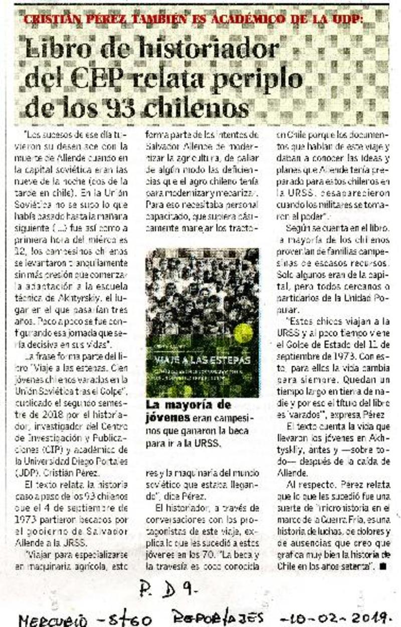 Libro de historiador del CEP relata periplo de los 93 chilenos. [artículo]