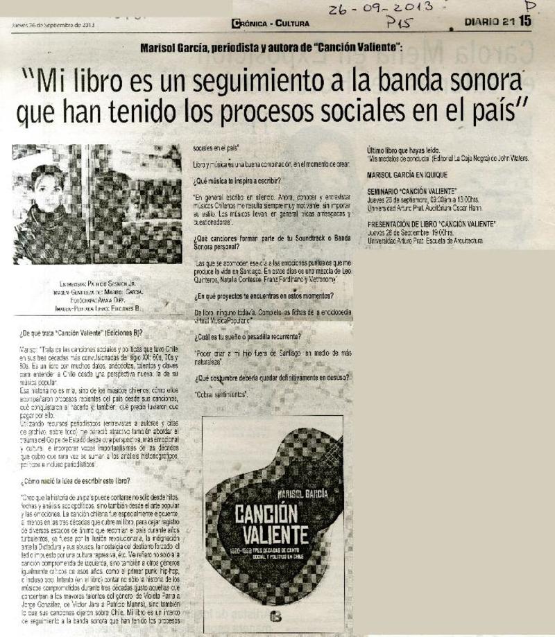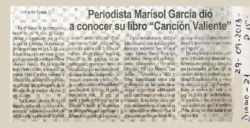 Periodista Marisol García dio a conocer su libro "Canción Valiente" [artículo] Freddy Torres O.