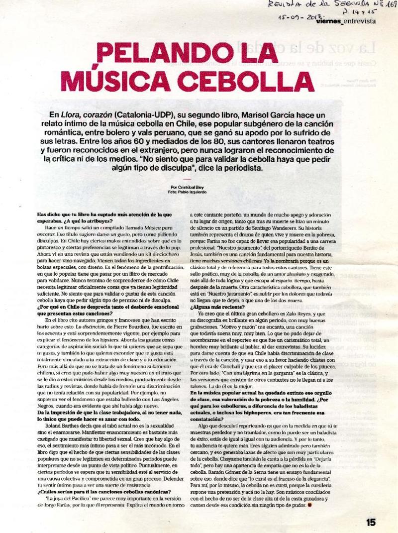 Pelando la música cebolla [artículo] Por Cristóbal Bley.