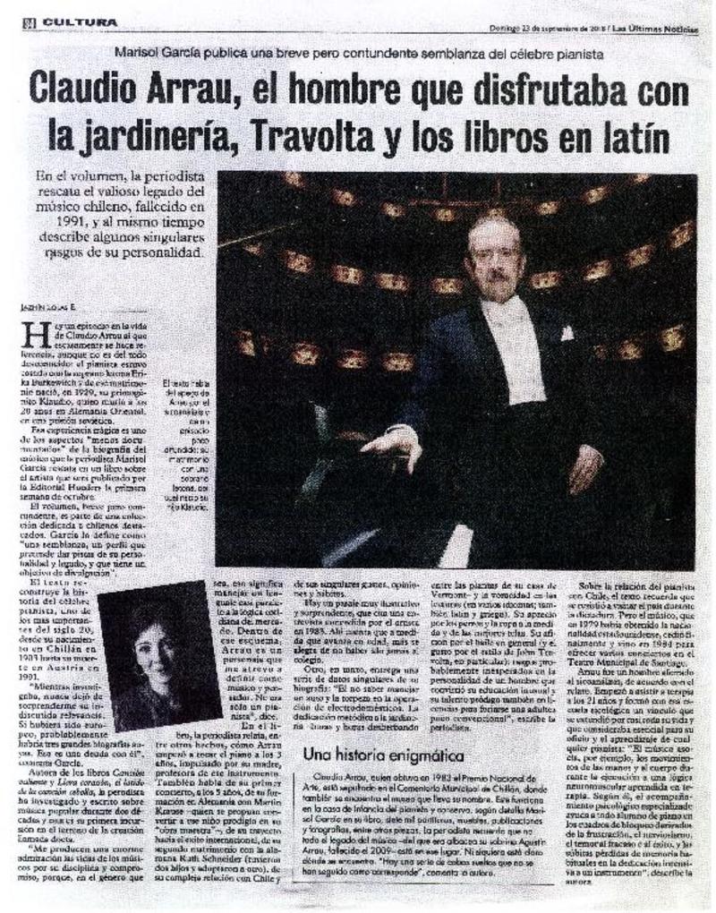 Claudio Arrau, el hombre que disfrutaba con la jardinería, Travolta y los libros en latín [artículo] Jazmin Lolas E.