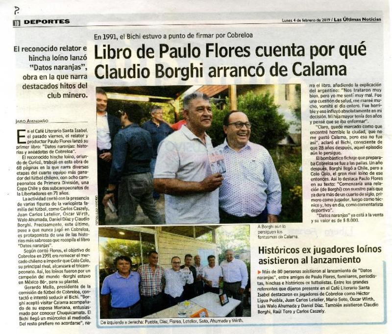 Libro de Paulo Flores cuenta porqué Claudio Borghi arrancó de Calama [artículo] Jairo Avendaño.