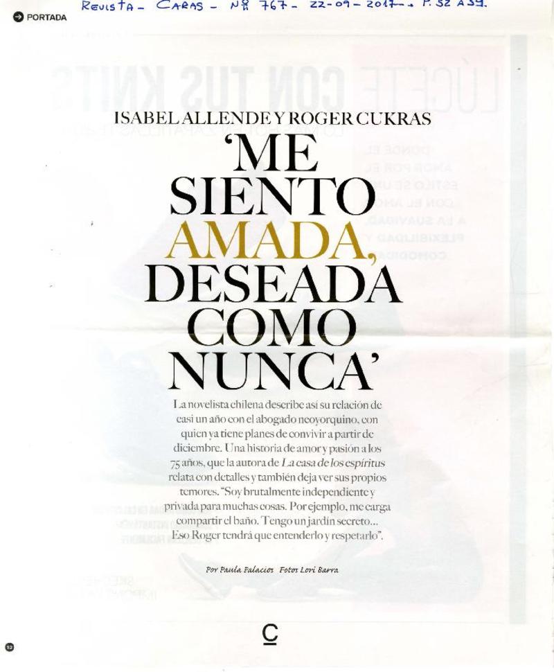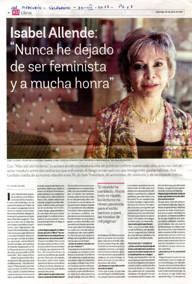 Isabel Allende: "Nunca he dejado de ser feminista y a mucha honra" [artículo] Por Amelia Carvallo.