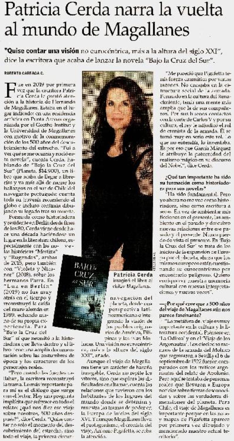 Patricia Cerda narra la vuelta al mundo de Magallanes [artículo] Roberto Careaga C.