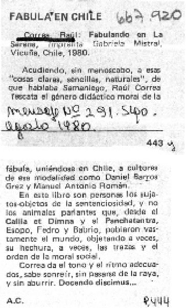Las fábulaciones de Raúl Correa  [artículo] P. Vega G.