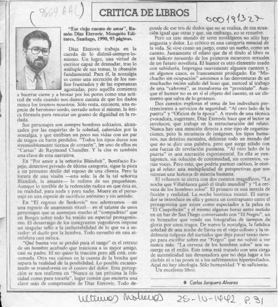 "Ese viejo cuento de amar" [artículo] Carlos Jorquera Alvarez.