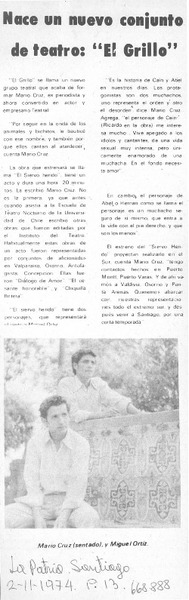 Nace un nuevo conjunto de teatro "El Grillo". [artículo]