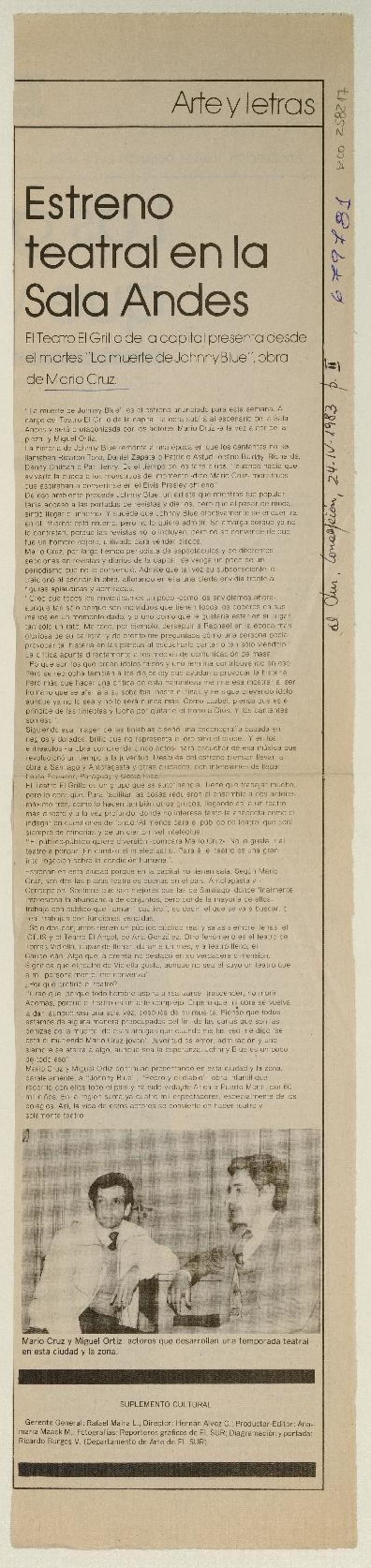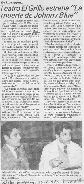 Teatro El Grillo estrena "La muerte de Johnny Blue". [artículo]