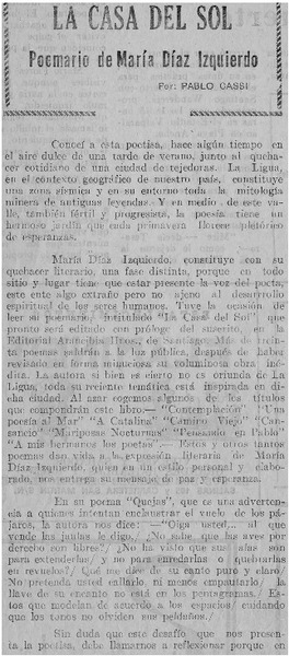 La casa del sol [artículo] Pablo Cassi.
