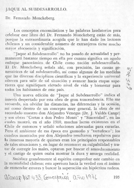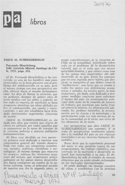 Jaque al subdesarrollo [artículo] Agustín Billa Garrido.