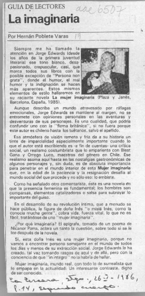 La imaginaria [artículo] Hernán Poblete Varas.