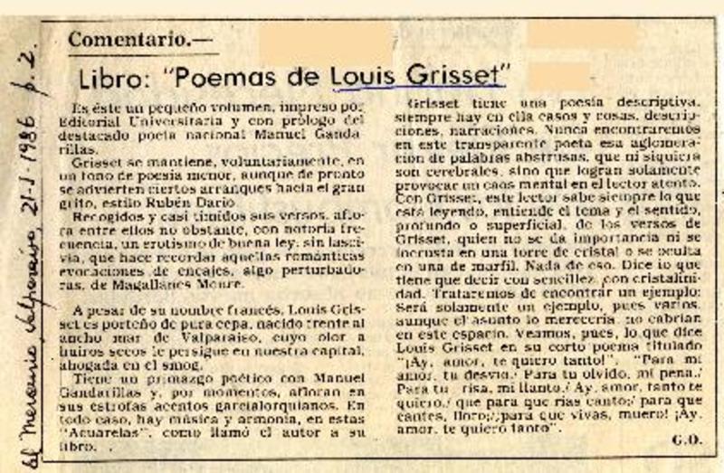 Libro, "Poemas de Louis Grisset" [artículo] G. O.