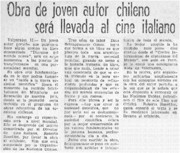 Schiappacasse, Dino - Autores chilenos - Discurso del mundo nuevo