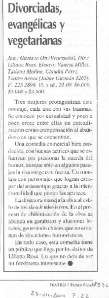 Divorciadas, evangélicas y vegetarianas [artículo] Don Sati.