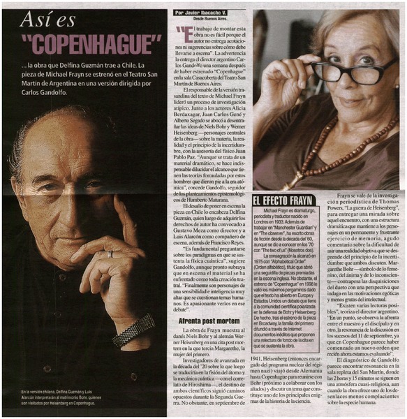 Autores chilenos - Frayn, Michael - Copenhague - Gandolfo, Carlos
