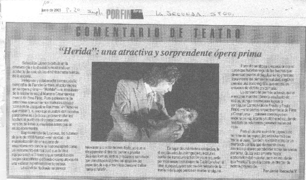"Herida": una atractiva y sorprendente ópera prima. [artículo] Jvier Ibacache V.