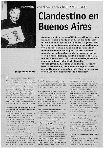 Clandestino en Buenos Aires [artículo] Jorge Boccanera.